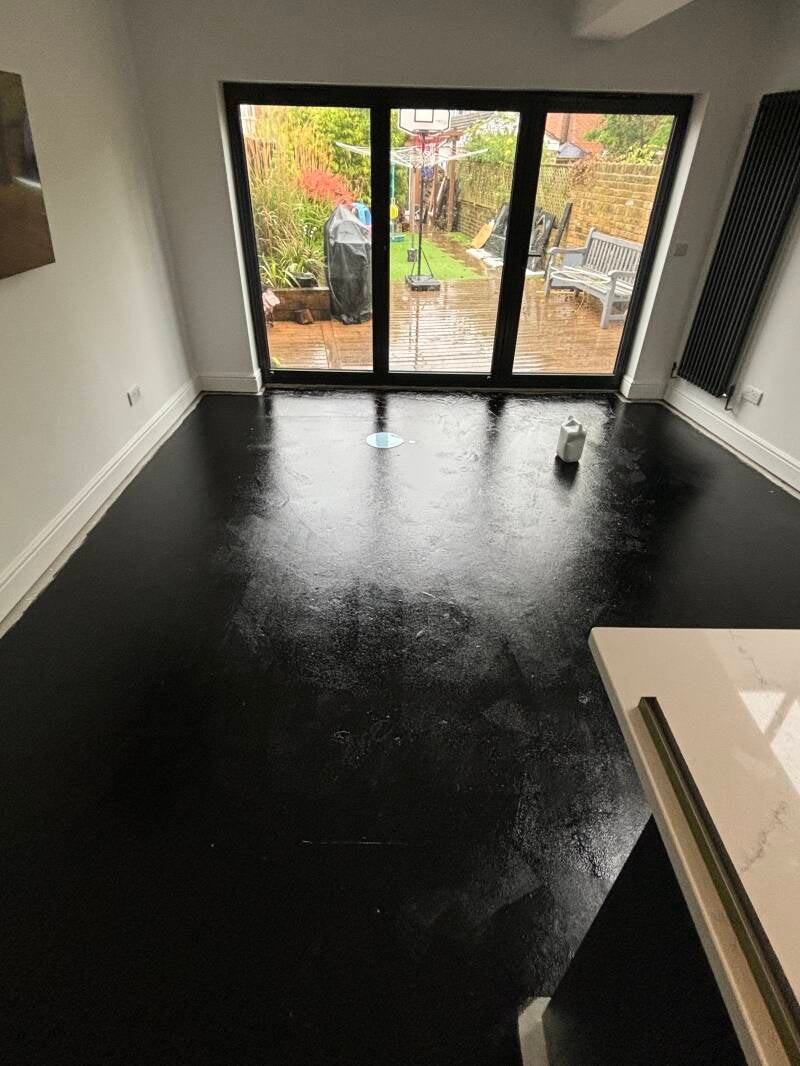 This week, we had a concrete floor that had a history of dampness and was reading damp on our tester. Our client requested a herringbone luxury vinyl tile. Our solution for this was to install an epoxy liquid dpm (damp proof membrane) which creates an impurvious barrier and allows us to apply latex screed smoothing compound and our Lvt.